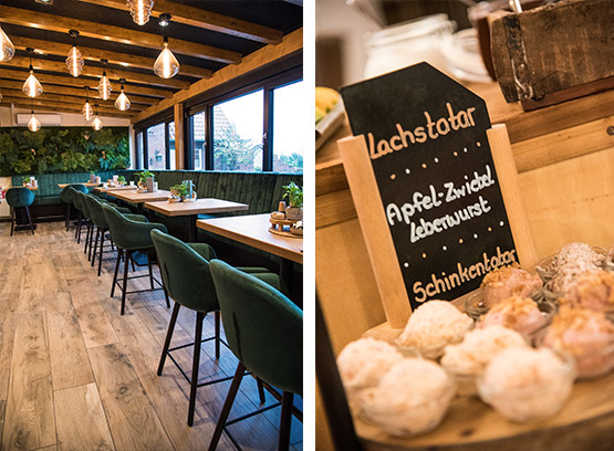 Ob zum Frühstücksbüfett, zum herzhaften Mittagstisch oder nachmittags zu Kaffee und Kuchen (Warme Küche von 12.00 bis 16.00 Uhr).